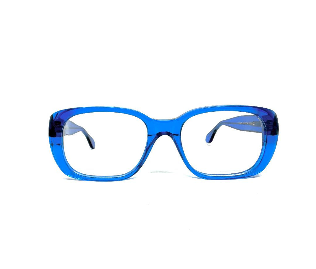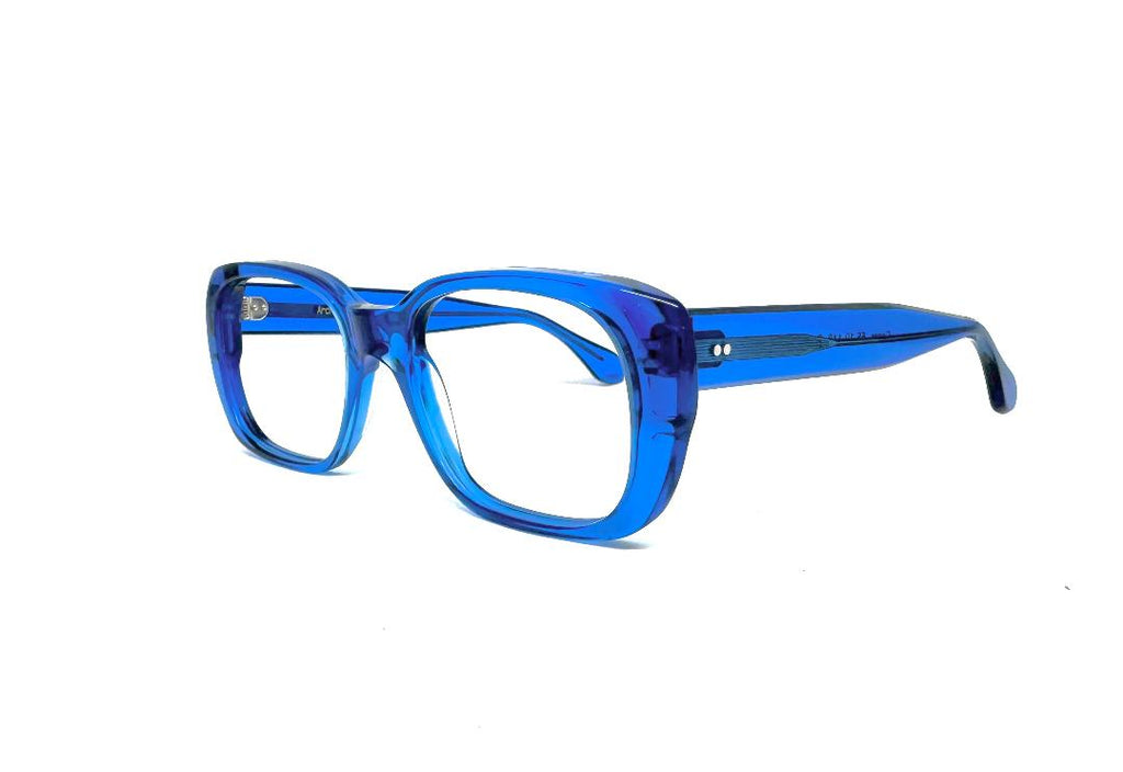 55x19 - 148. A bold look of a mogul or an empresario. Totally unisex but only worn by a confident stylish man. Soft square with beautifully rounded edges to accentuate the silhouette of the frame. Made with seven barrel hinges.